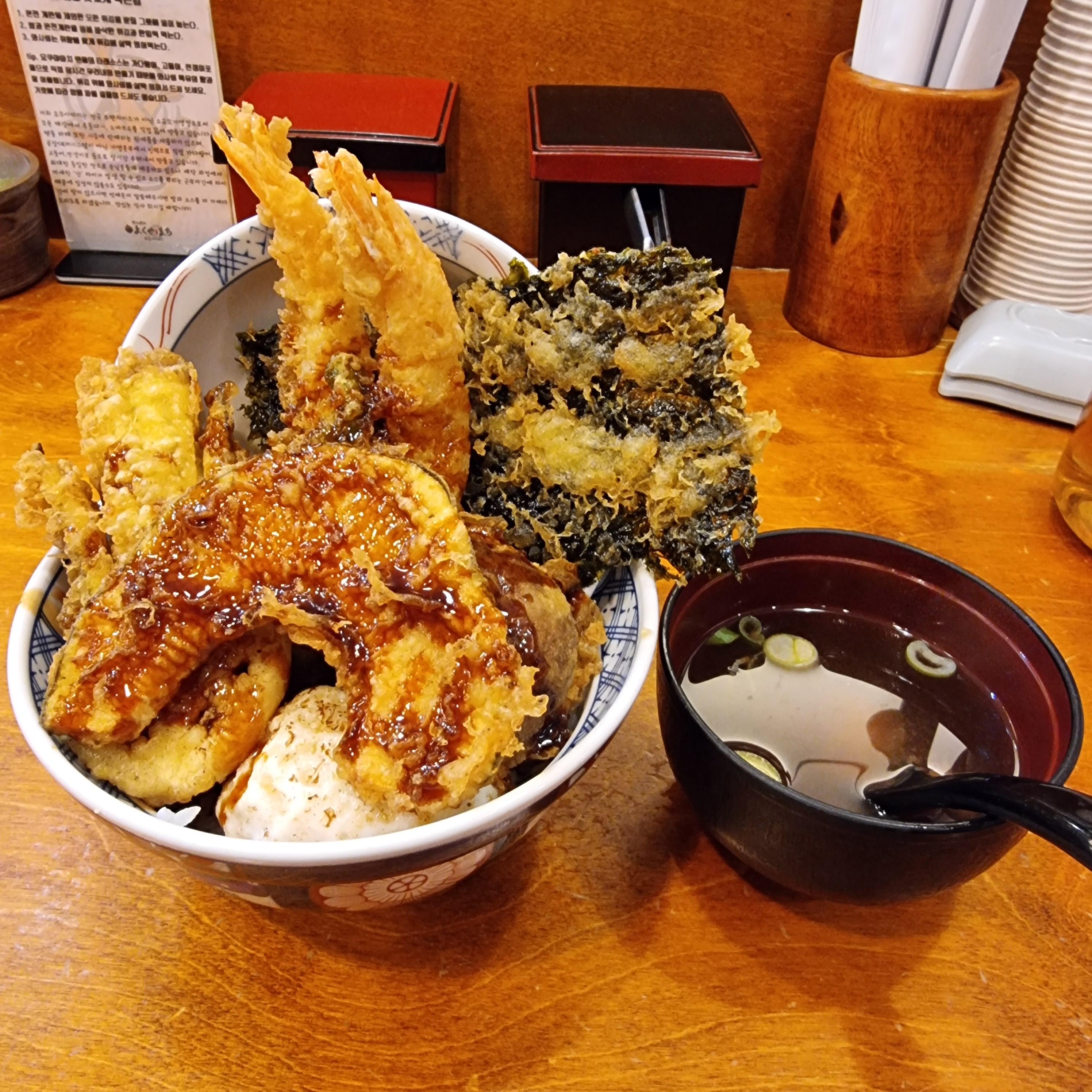 텐동 처음 먹어보는데 튀김마다 식감이 다 달라서 맛있었다.