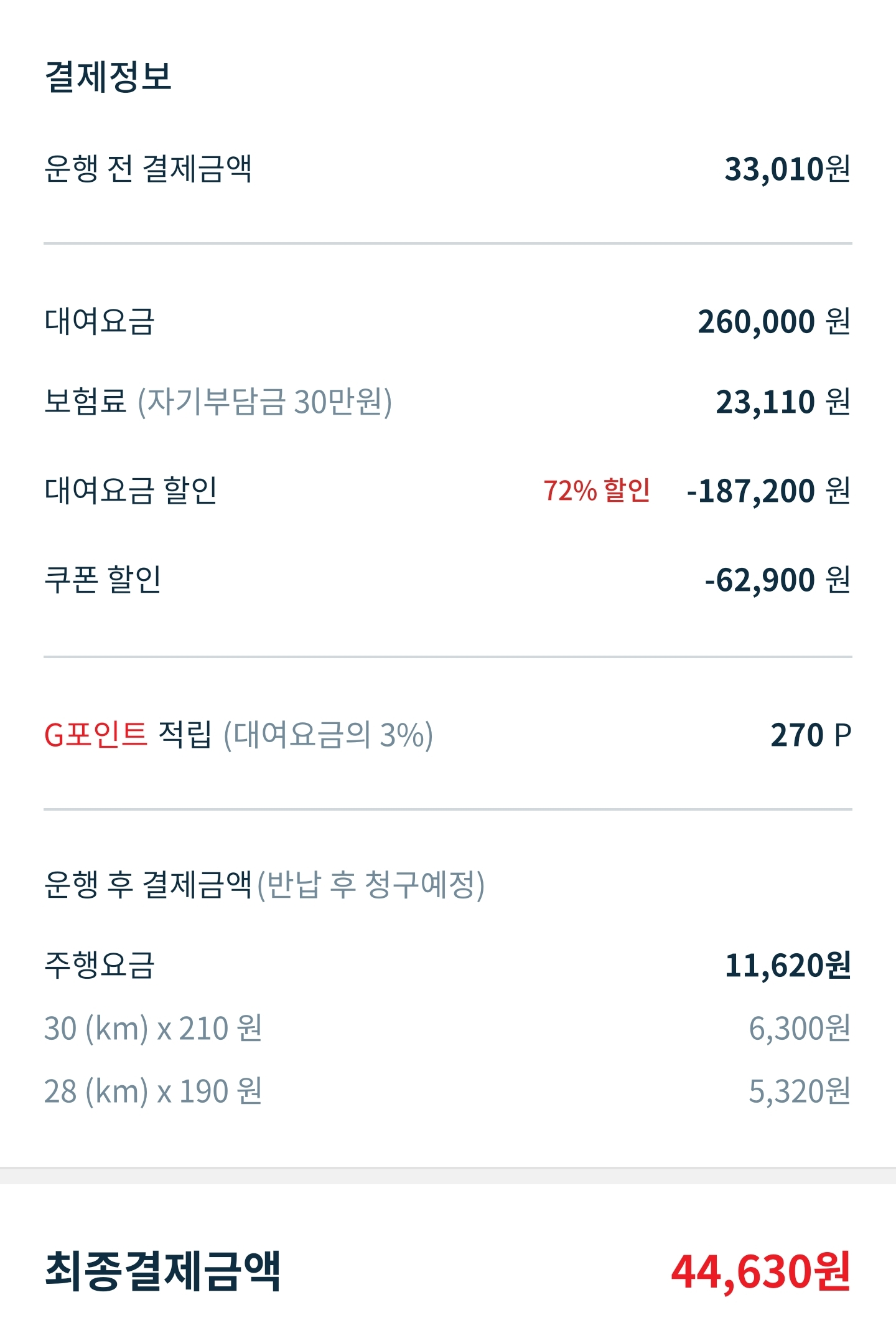 여기에 보험비 + 주행거리 금액만