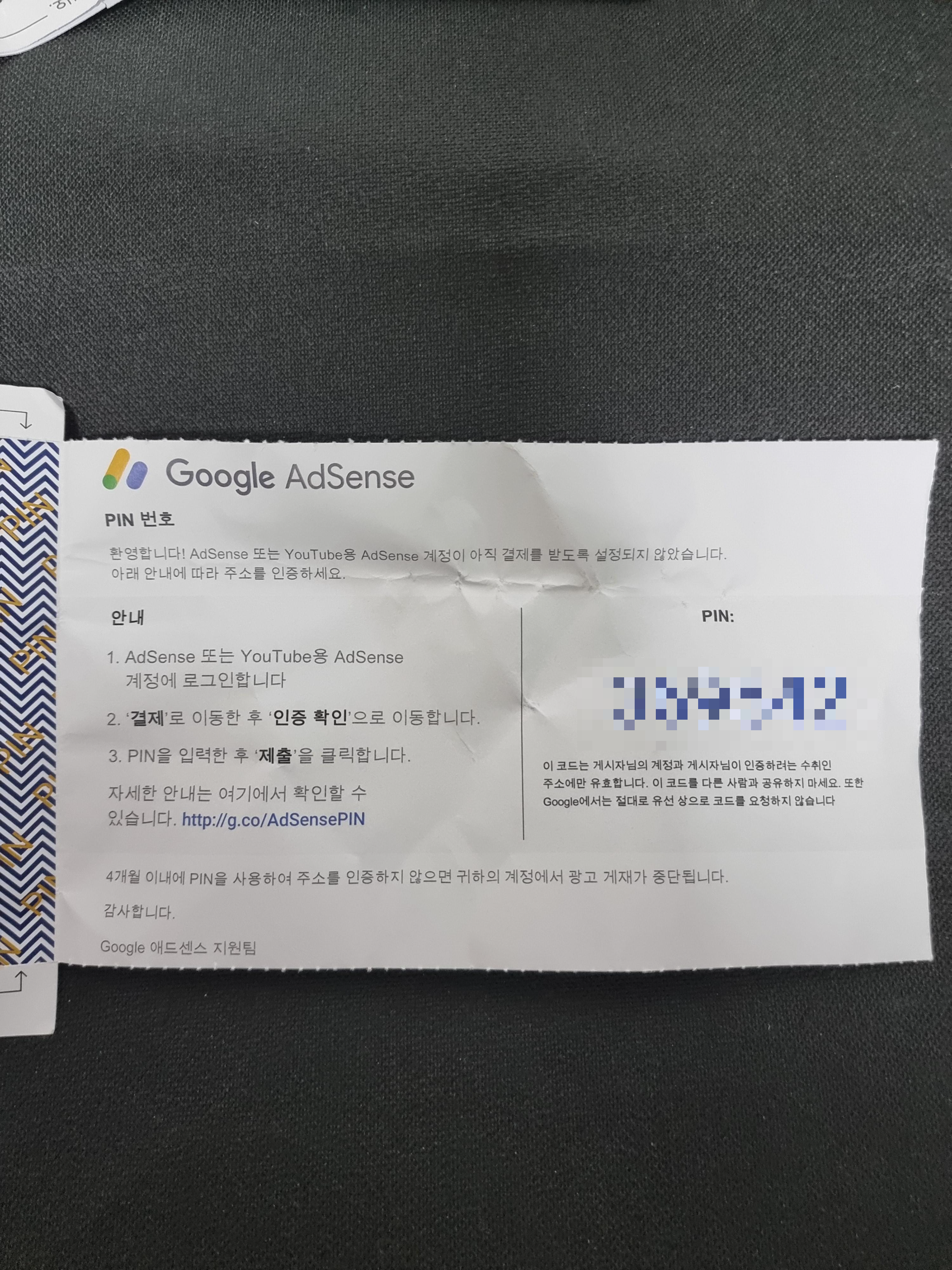 받은 PIN번호를
