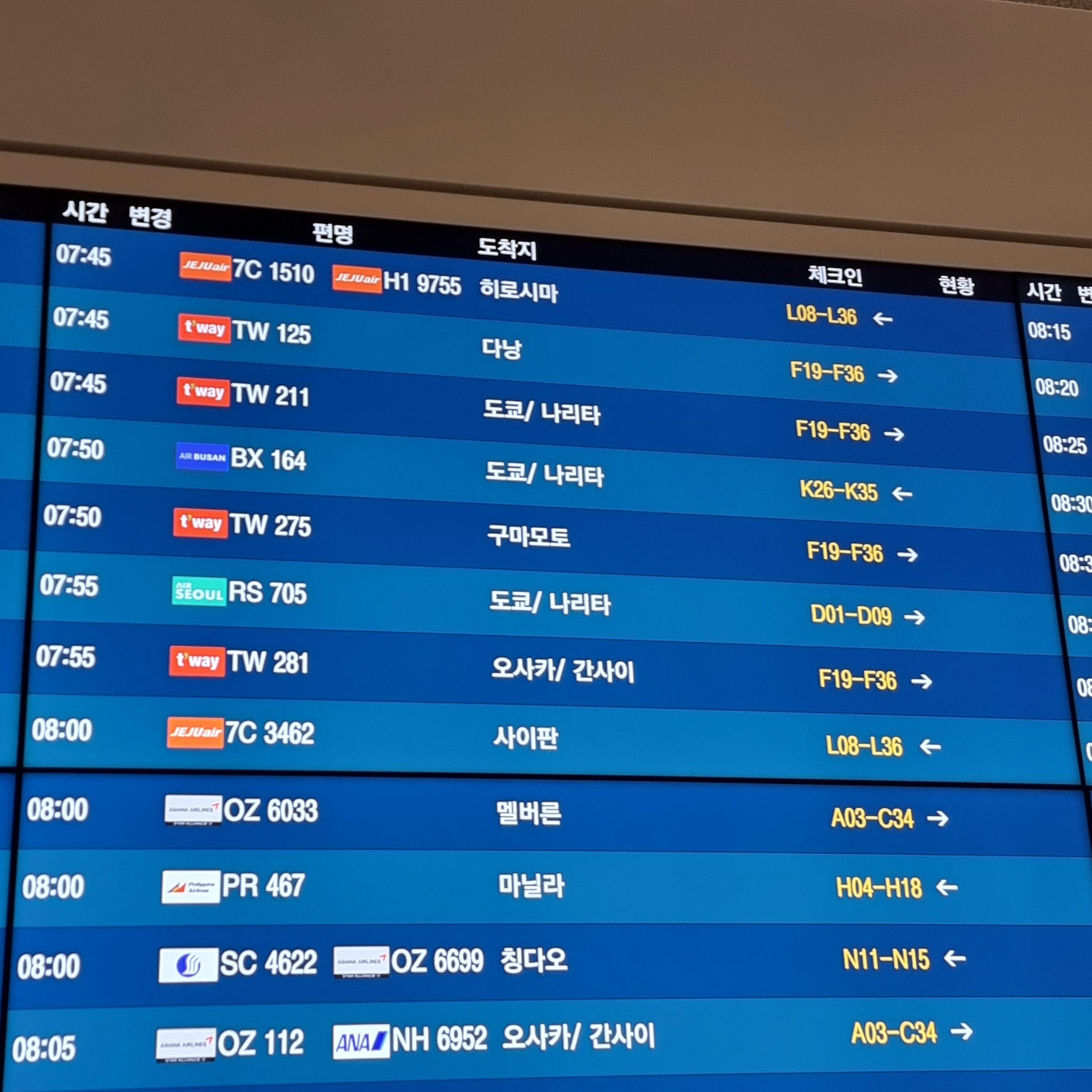 우리가 타야할 비행기는 07:50 부산에어 도쿄 나리타행