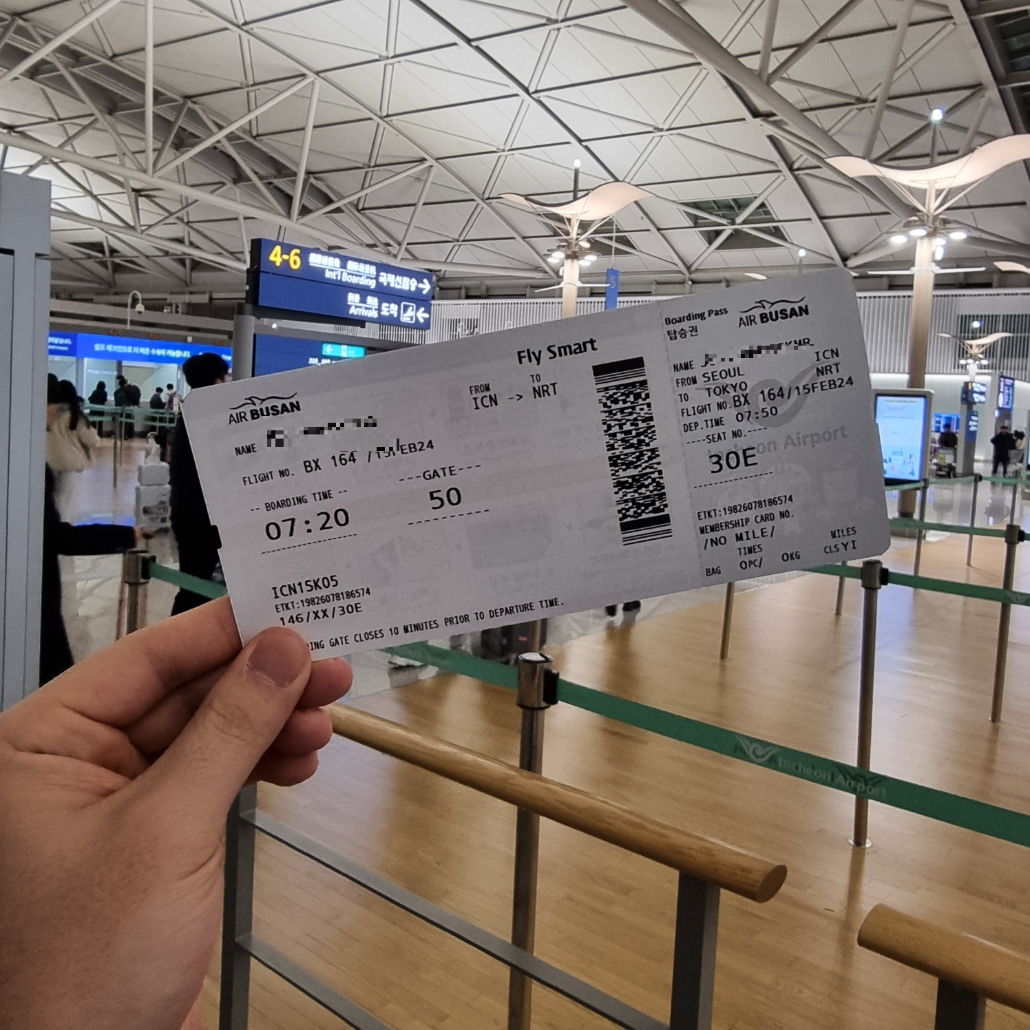 우리가 타야할 비행기는 07:50 부산에어 도쿄 나리타행
