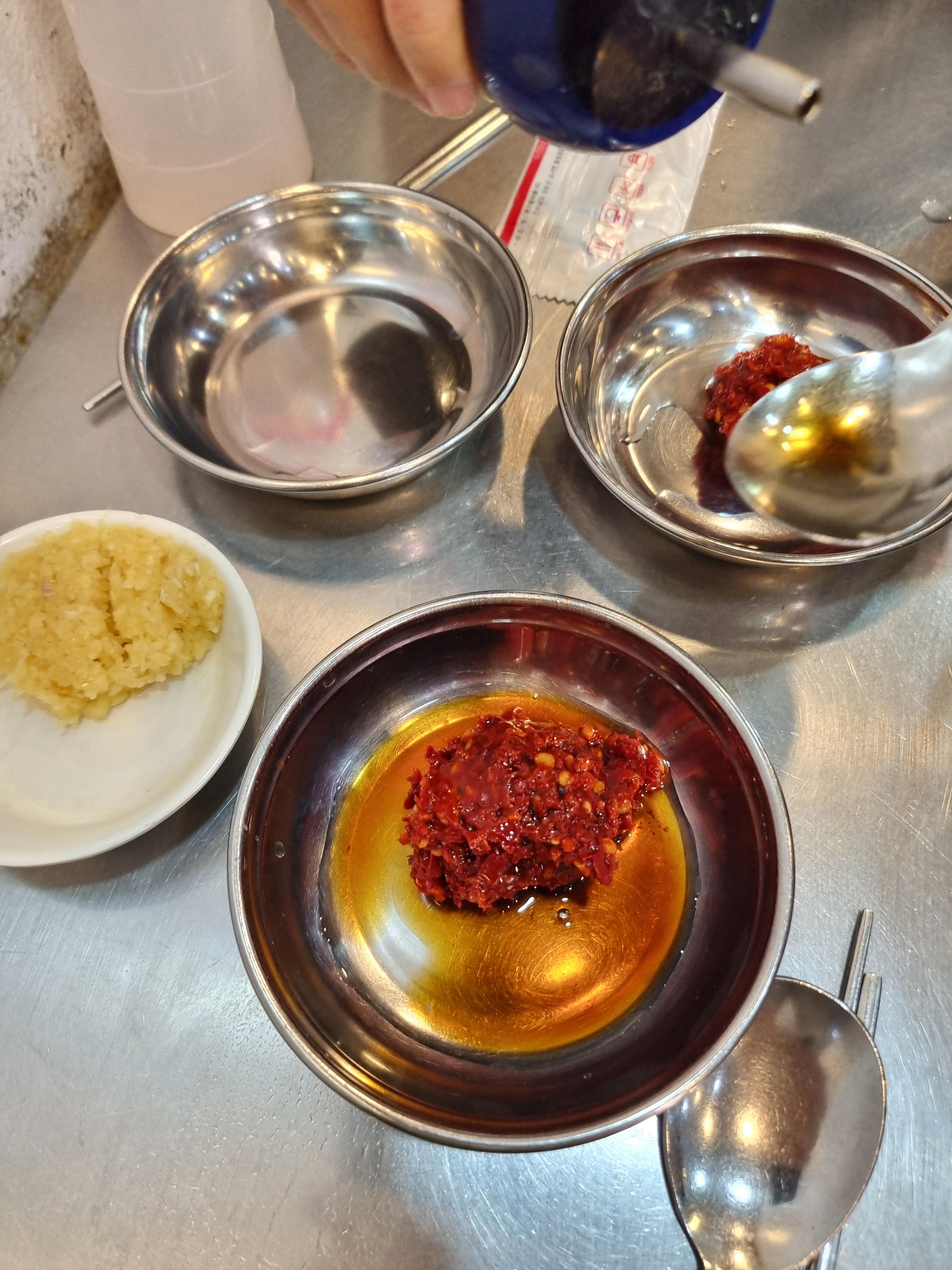 테이블 옆에 다대기? 양념장?