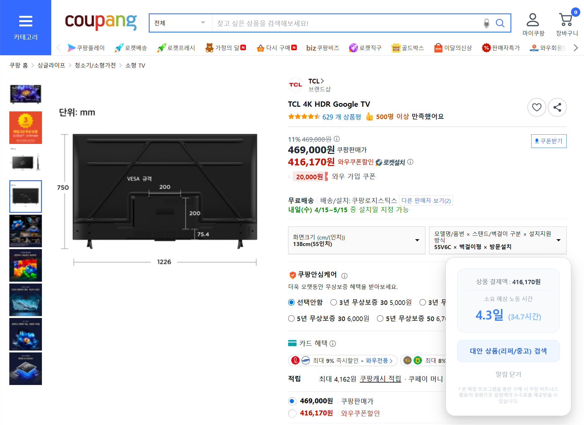 설정을 완료하고 쿠팡에서 물건을 클릭하면