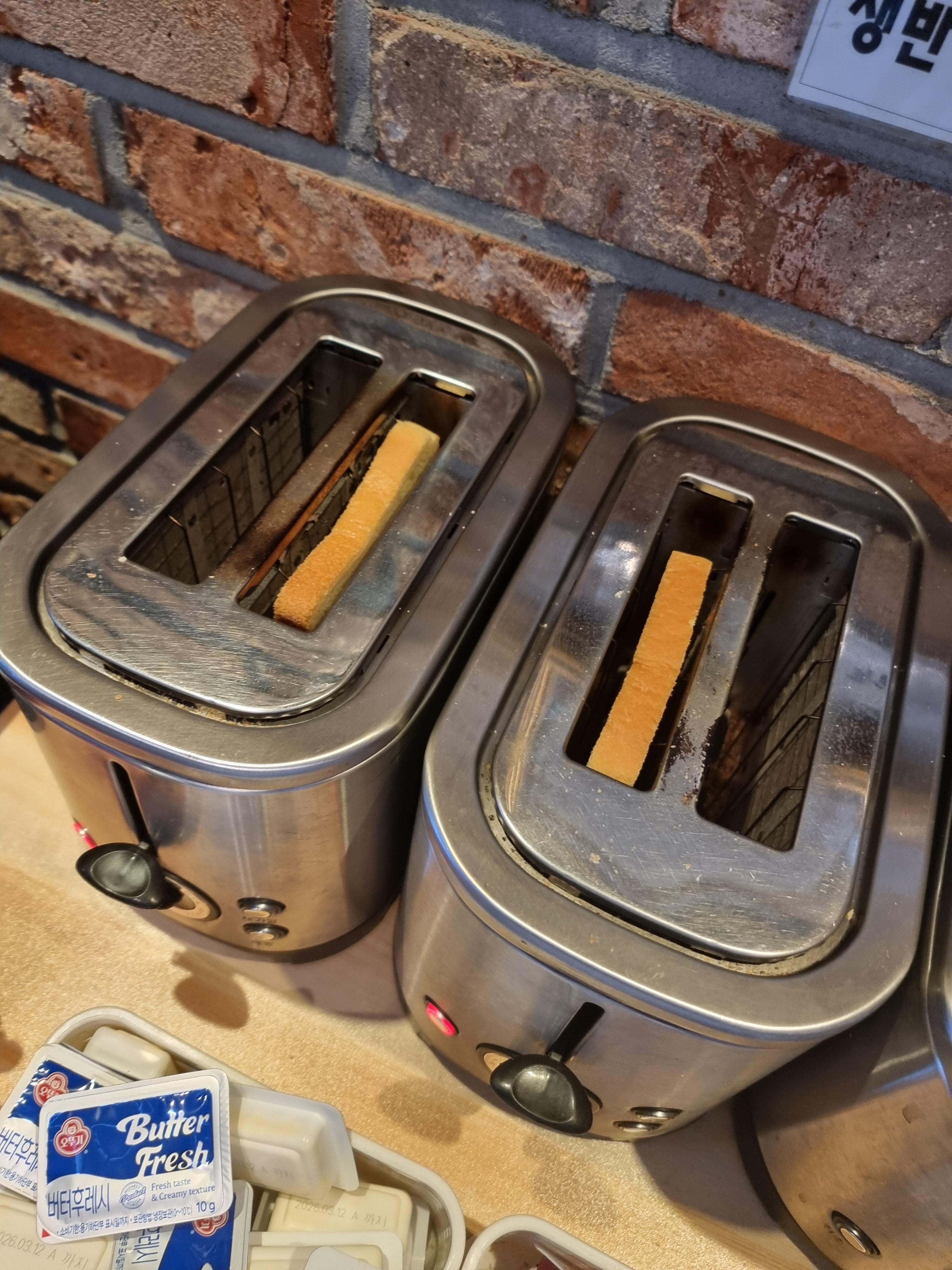 아침에 빵 한쪽을 구워서
