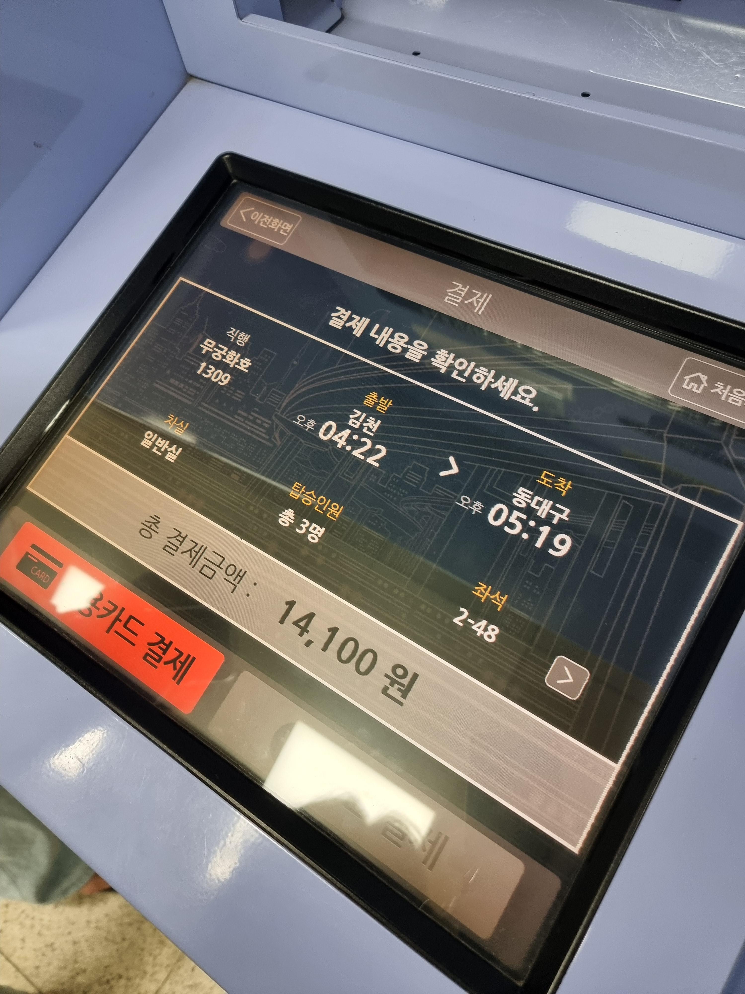 중간에 동대구에서 갈아타기로 한다.