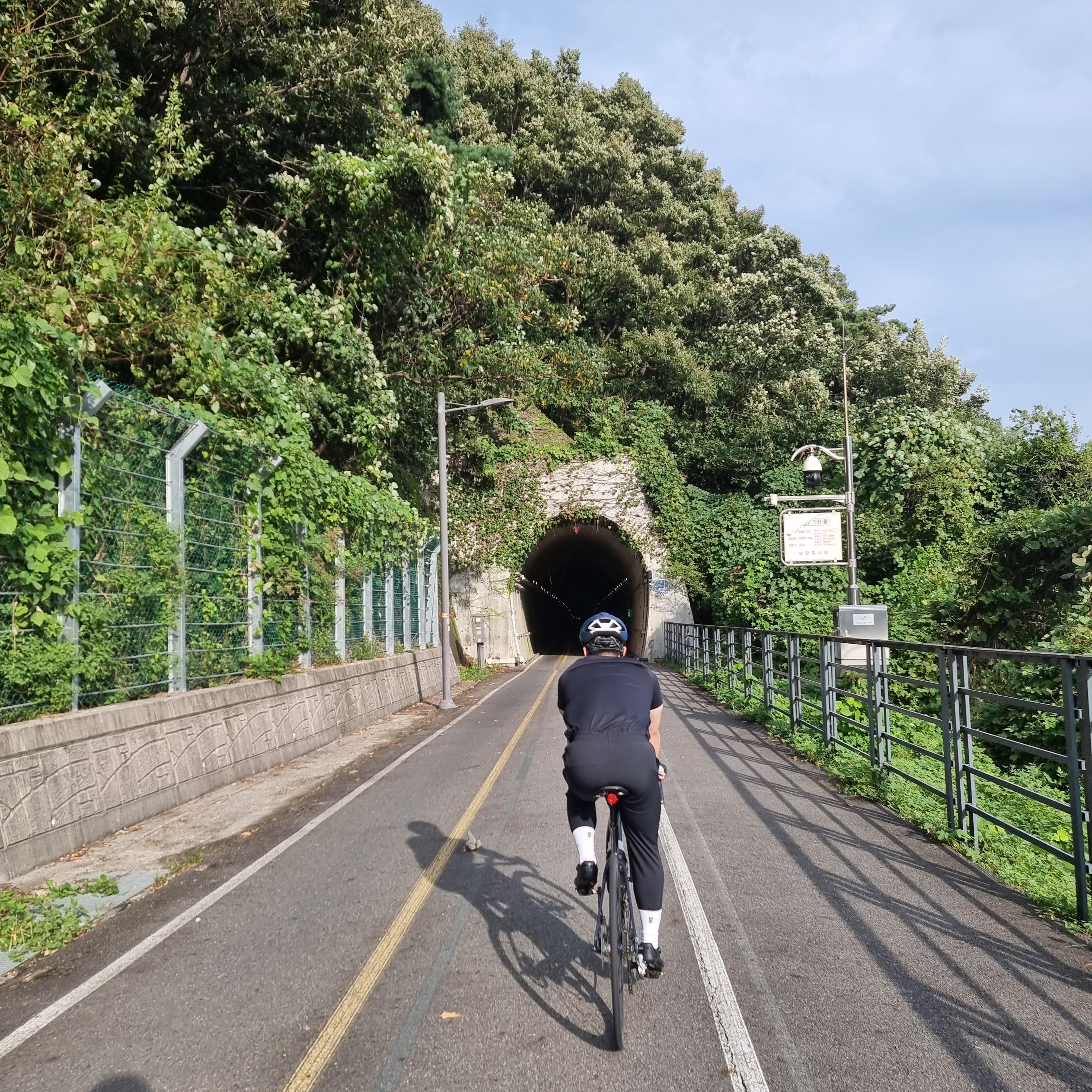 가는길에 자전거 길 터널도 있고, 북한강 철교도 보고 힐링 스팟이 되게 많다.