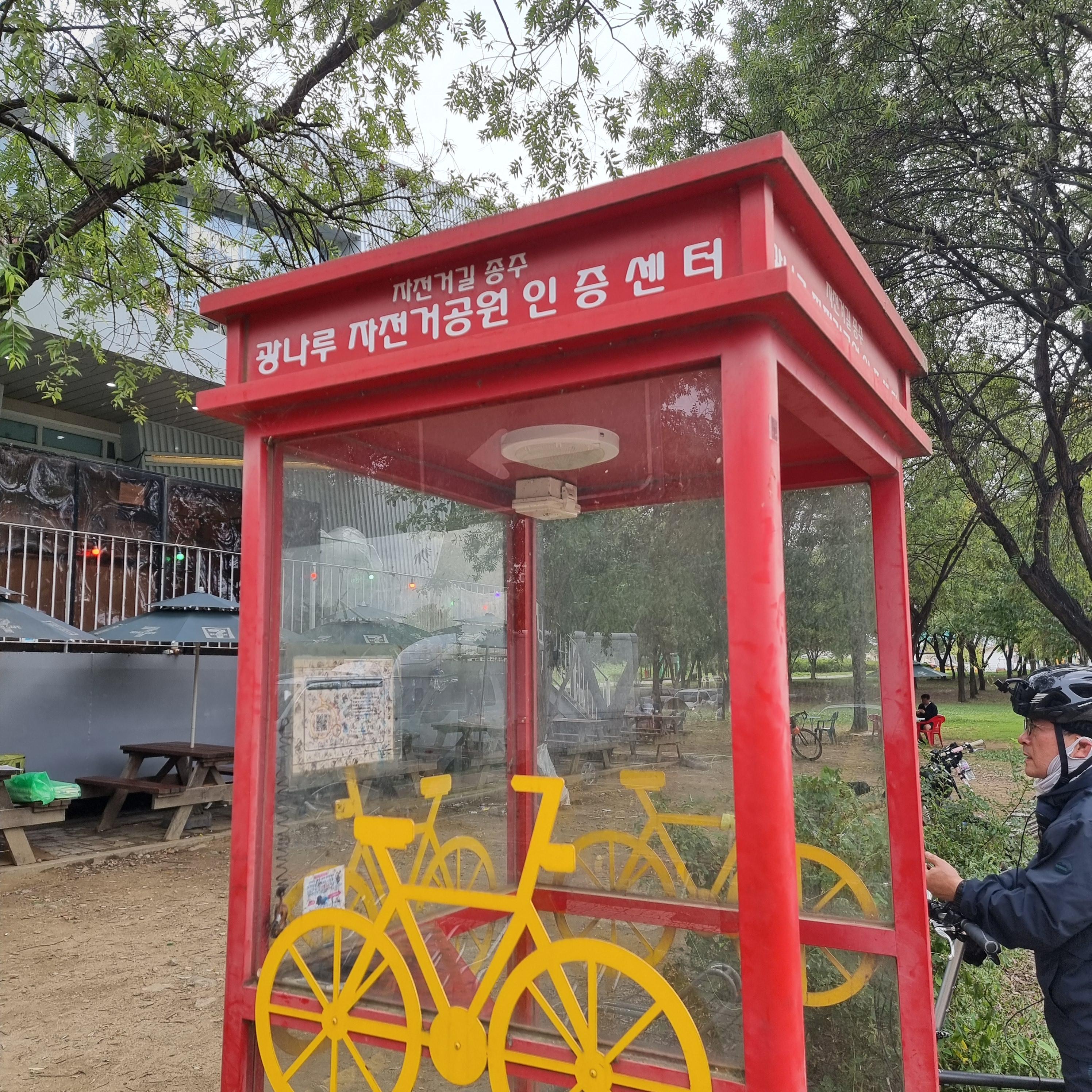 나중에 인증으로 기록되려면 자전거와 본인 그리고 인증부스가 같이 나온 사진으로 남기면 된다고 한다.