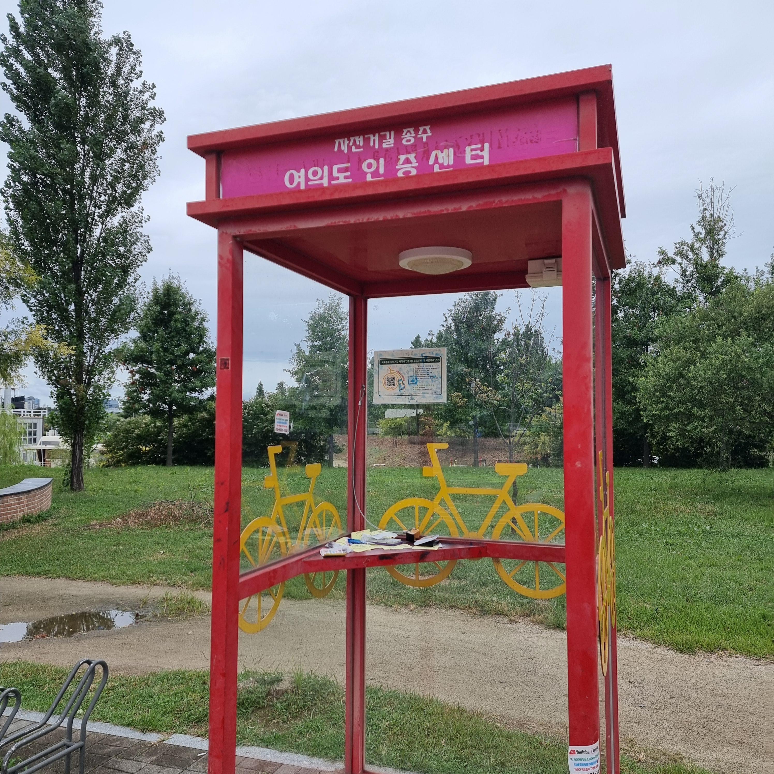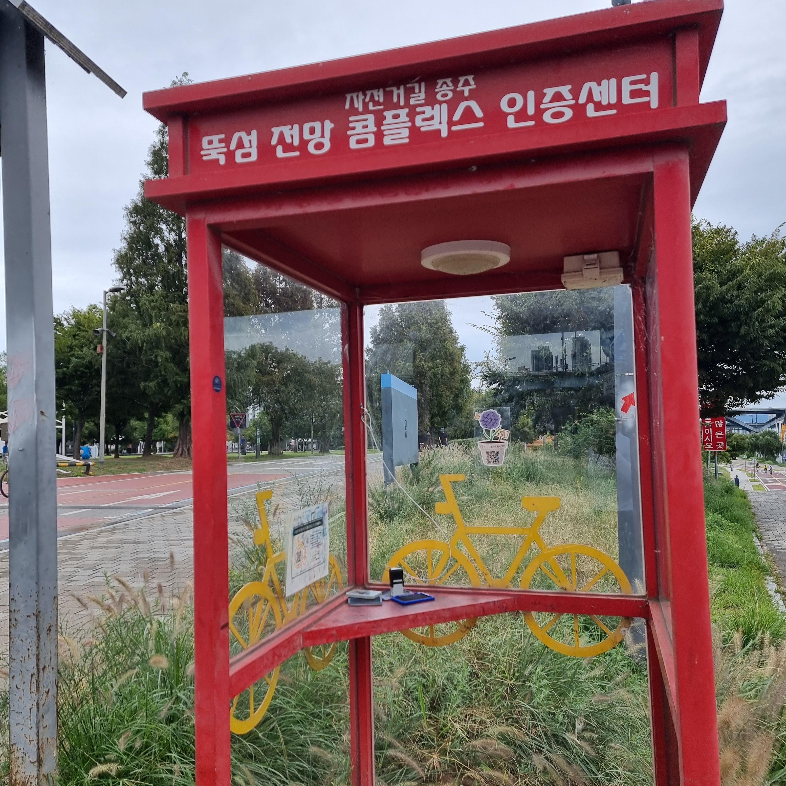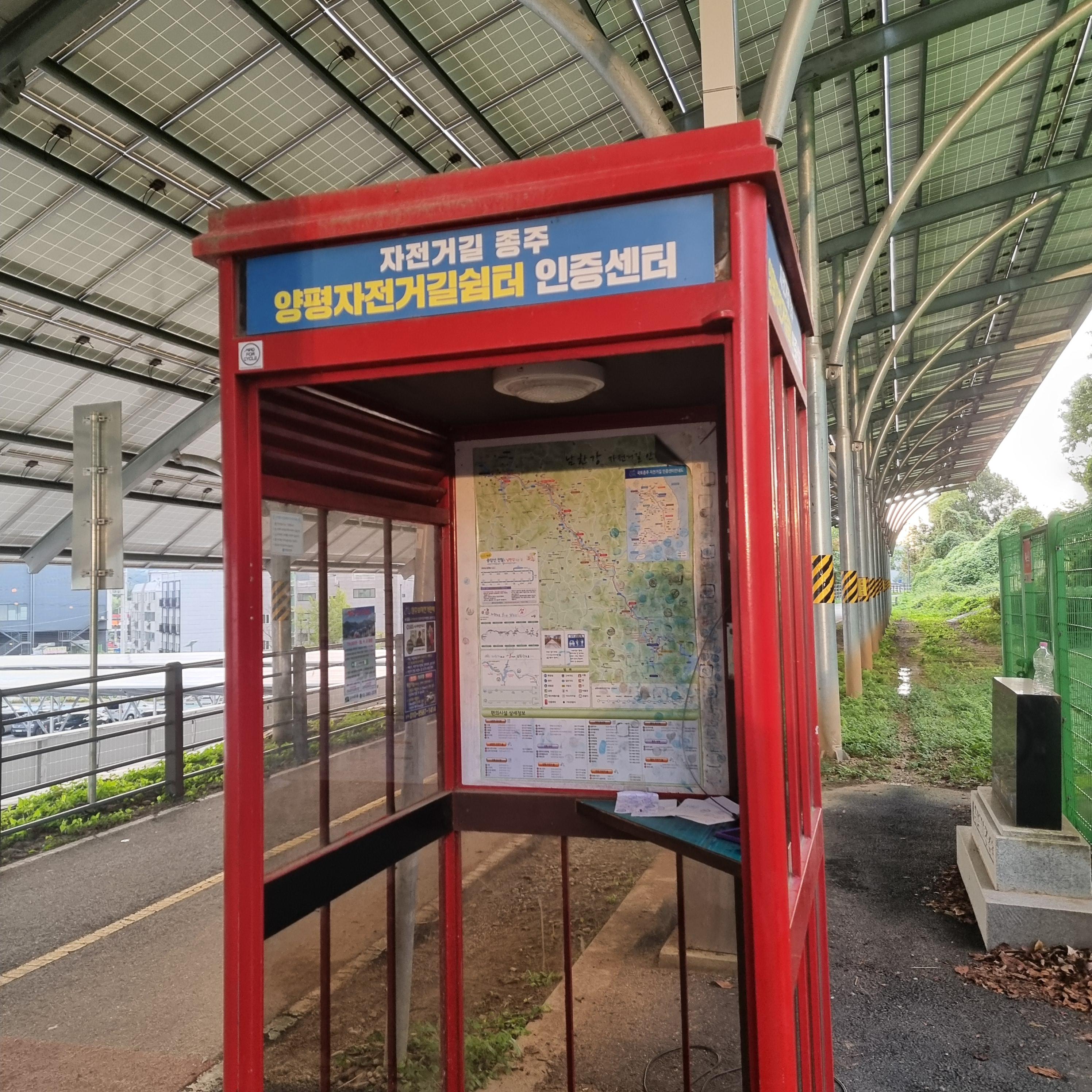 '양평자전거길쉼터 인증센터' 라는 이름으로 부스가 보인다.