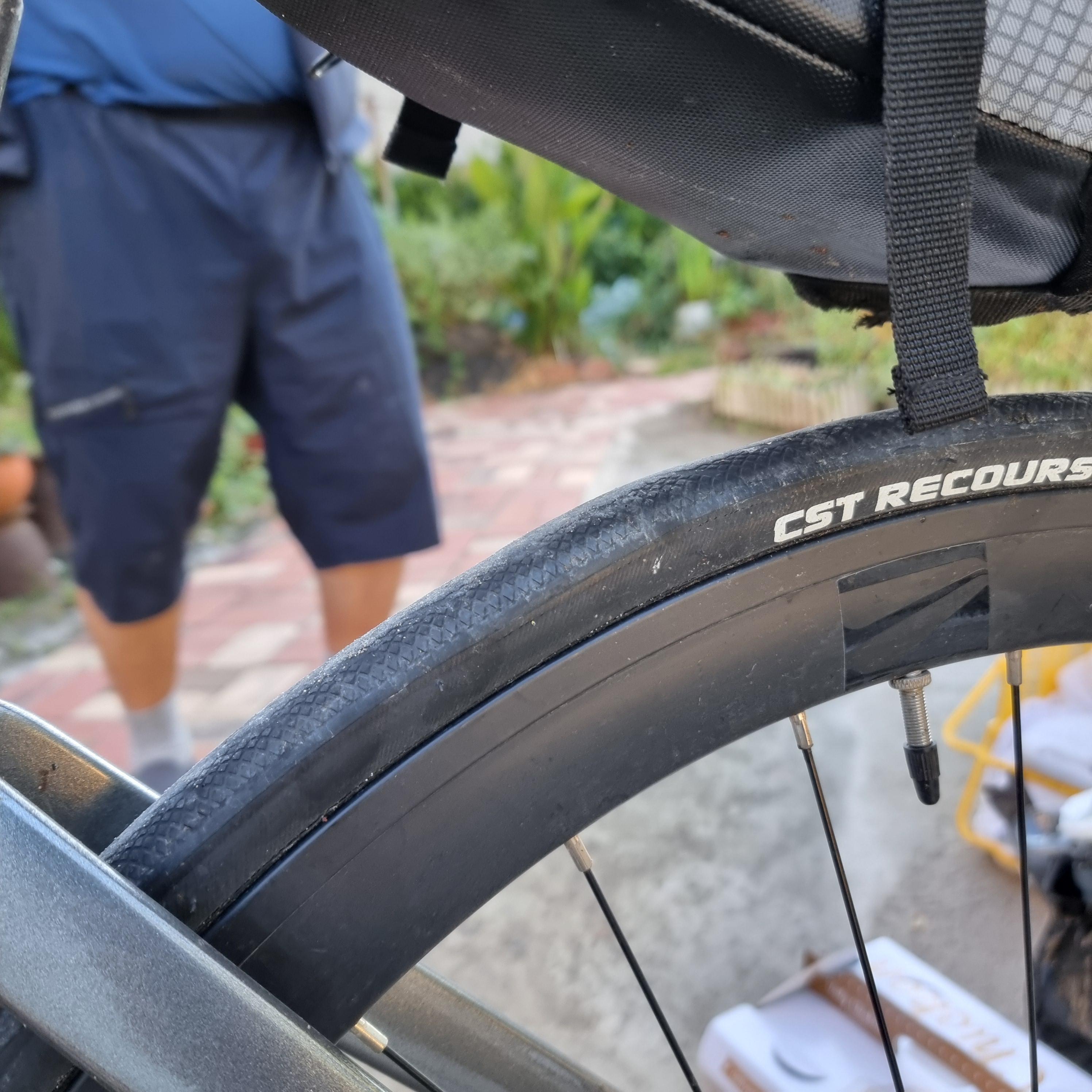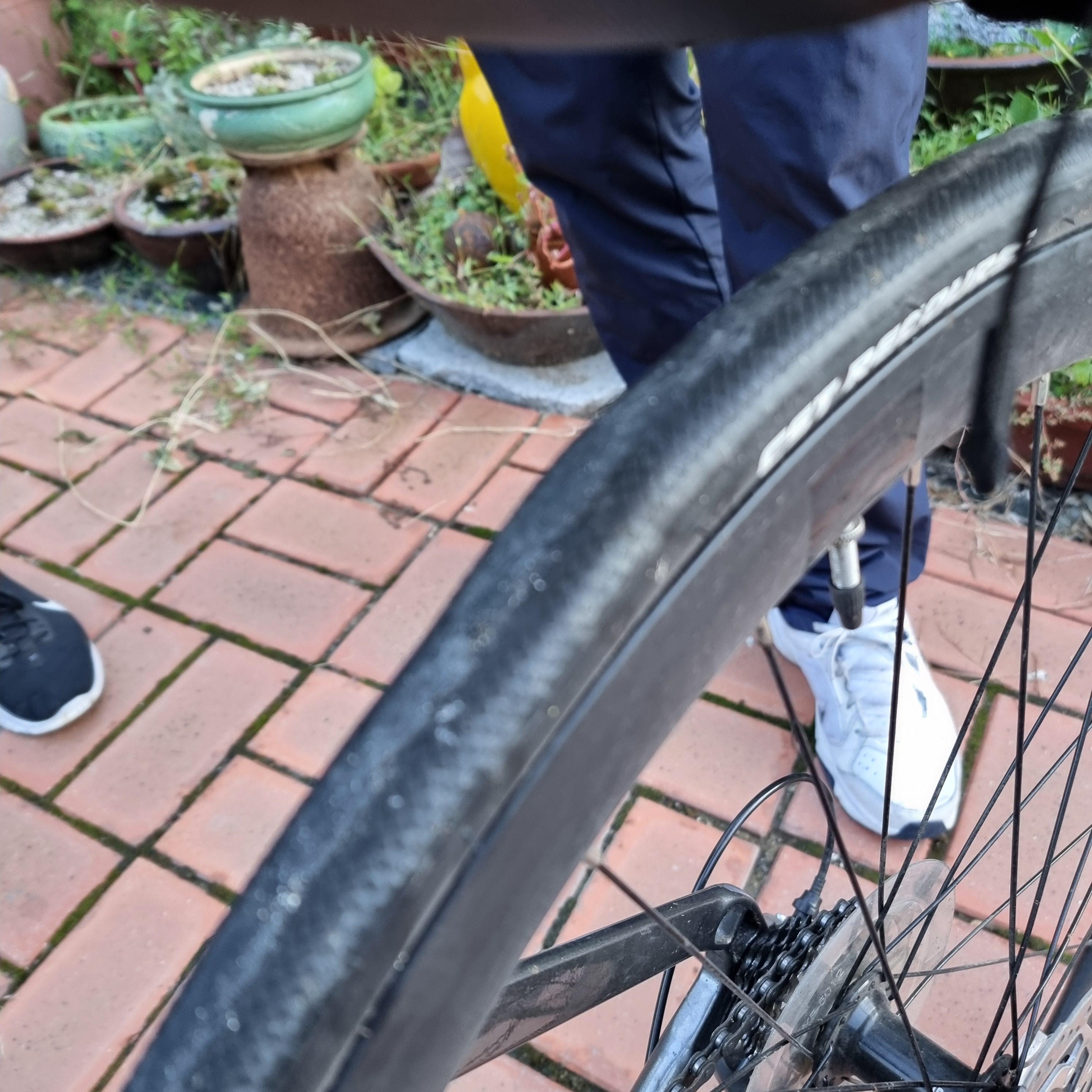 살짝 부풀어 있는 뒷바퀴..
