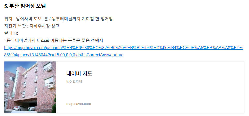바로 전역인 범어사역에서 마지막 숙박!