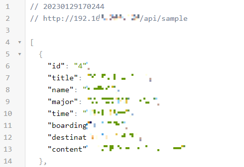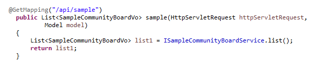 브라우저에서 http://192.168.xxx.xxx:80/api/sample 을 검색하게 되면 미리 입력한 데이터를 확인 할 수 있습니다.