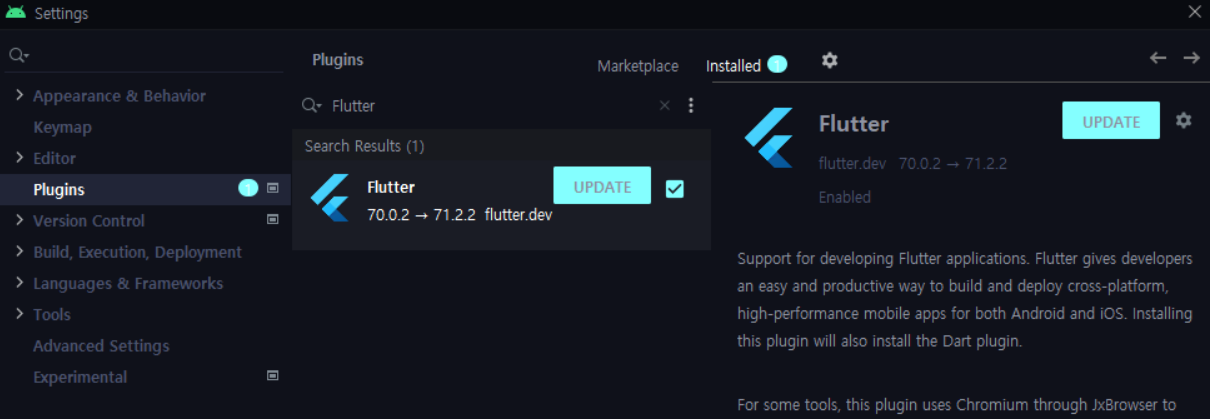 Flutter 검색 후 설치