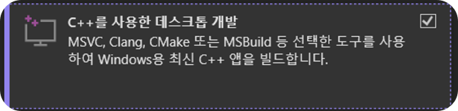 데스크톱 개발 워크로드 체크 후 설치 진행.