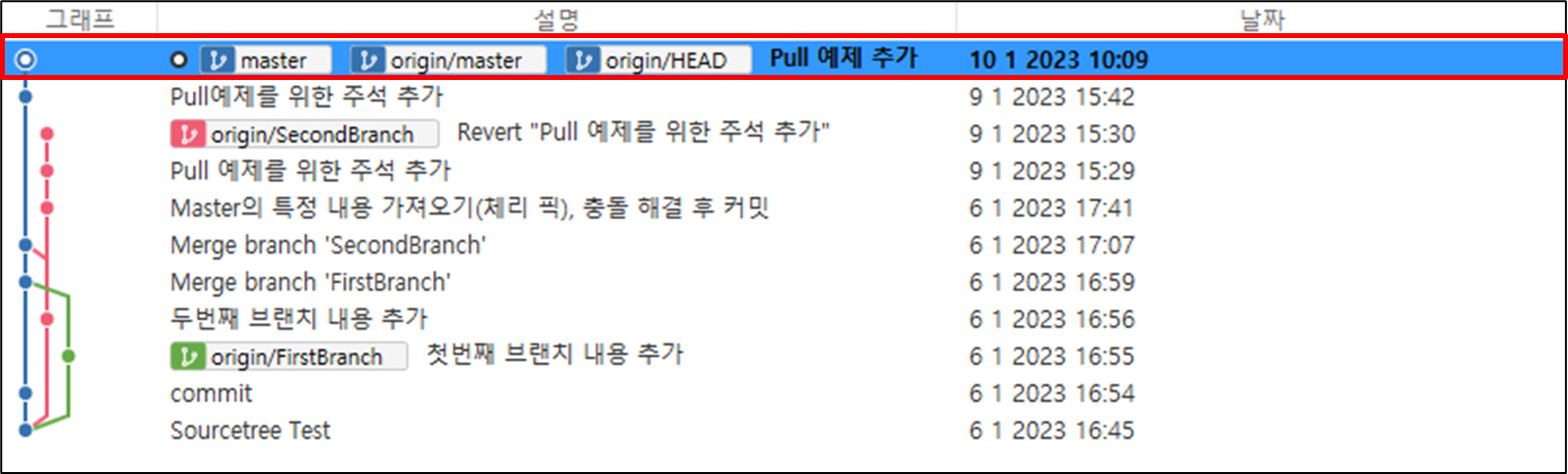 PullPractice의 화면을 보게 되면 Master 브랜치에서 입력한 내용이 가져와서 추가된 것을 확인할 수 있습니다.