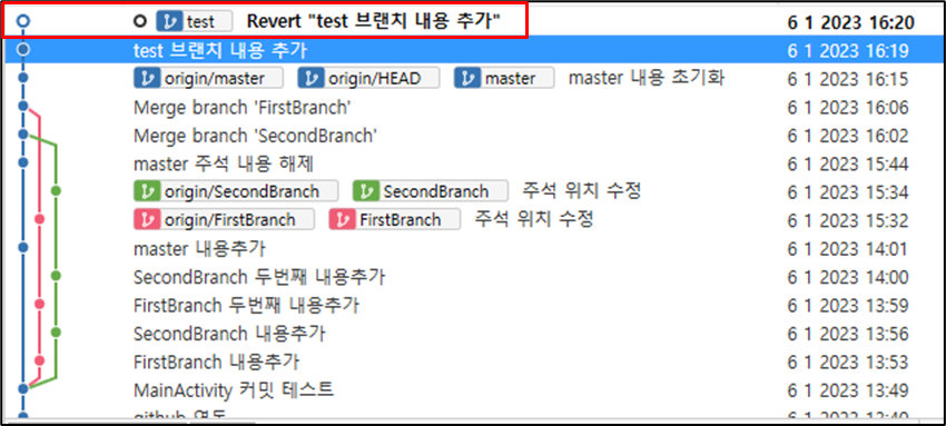 해당 내용에서 우클릭 - 커밋 되돌리기(Revert)