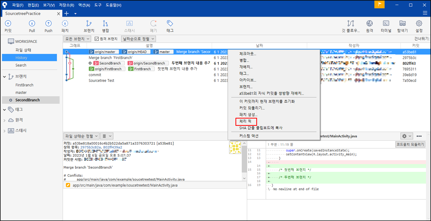 [Git] 소스트리(Sourcetree) Merge Conflict