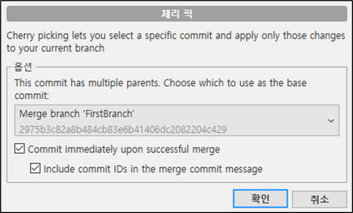 -> 다른 브랜치에서 하나의 커밋만 가져와서 현재 브랜치에 반영시키는 것.